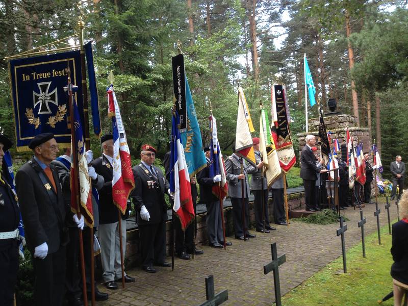 Secteur mémoriel du Linge Le site du Linge, éperon rocheux des Vosges, à 1 000 m d’altitude, comprend 2 cimetières distincts : la nécropole nationale française du Wettstein et le cimetière allemand d’Hohrod-Bärenstall. Les brefs mais violents combats qui ont lieu sur cette portion du front d’à peine 2 km, ont fait 17000 victimes françaises et allemandes. Le site a été surnommé par F. Tisserand, le « Tombeau des chasseurs » car nombre de ces soldats sont restés ensevelis sur place, comme en attestent les corps retrouvés ponctuellement encore aujourd’hui. C’est une des motivations du classement d’une partie du champ de bataille au titre des monuments historiques dès 1921. Alors que la crête du Linge est éloignée des cols et des axes importants, donc sans réel enjeu géostratégique, les chasseurs alpins y ont été mobilisés par le commandement français pour déborder par les hauts l’adversaire. Ainsi entre le 20 juillet et le 15 octobre 1915, les assauts français vont se succéder dans une volonté de reconquête du territoire, entrecoupés par les vagues de contre-attaques allemandes. L’ampleur des aménagements et l’énorme avantage naturel de la défense allemande installée et fortifiée depuis février 1915 ne laissent que peu de chance aux assaillants. Néanmoins les forces s’équilibrent et le front se fige fin 1915, dans une proximité forte de seulement quelques mètres parfois. Dans le cimetière du Wettstein se dresse dès 1915 une croix formée de troncs d’arbres abattus par des obus. Elle sera remplacée par une croix commémorative en granit arborant le mot « PAX», au pied de laquelle se trouve une sculpture de chasseur alpin agonisant et lâchant son fusil, un message qui prend tout son sens dans ce lieu mémoriel mais qui en 1939, année de son inauguration, s’est avéré quelque peu décalé à la veille de la seconde guerre mondiale. Sur l’autre versant, le mémorial pyramidal du cimetière originel allemand d’Hohrod-Bärenstall, lui répond, érigé en l’honneur des bataillons allemands. Ce cimetière a été déplacé, recréé et agrandi par les autorités françaises, dans les années 20, de l’autre côté de la route. En 1958, bien avant la convention conclue entre la France et l’Allemagne en 1966, un groupe de jeunes Allemands venus du Bade-Wurtemberg, réalise des travaux dans ce cimetière. Les années suivantes, de jeunes Français proposent spontanément leur aide. Cette expérience concluante illustre la volonté de « réconciliation par-dessus les tombes » portée par le Volksbundes Deutsche Kriegsgräberfürsorge (VDK). Depuis 1962 également, des cérémonies commémoratives franco-allemandes ont lieu autour de deux temps forts au cimetière du Wettstein et au cimetière d’Hohrod-Bärenstall. Les vestiges du champ de bataille du Linge sont sortis de la confidentialité en 1968 par la volonté de Colmariens. Au cœur du site, le Mémorial du Linge et son champ de bataille confiné illustrent et complètent la compréhension que peut avoir le visiteur. Constitué de souvenirs et témoignages, d’objets français et allemands trouvés sur place, il est devenu le 1er site musée consacré à la Grande Guerre visité en Alsace et accueille chaque année d’avril à novembre près de 50 000 visiteurs dont 6000 scolaires. Il vient de faire l’objet d’importants travaux d’extension. source : www.paysages-et-sites-de-memoire.fr/site/le-linge/