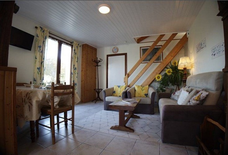 Etage (escalier de meunier): chambre (lit 160x200) avec convertible (130x190), petite salle d'eau et WC indépendant.