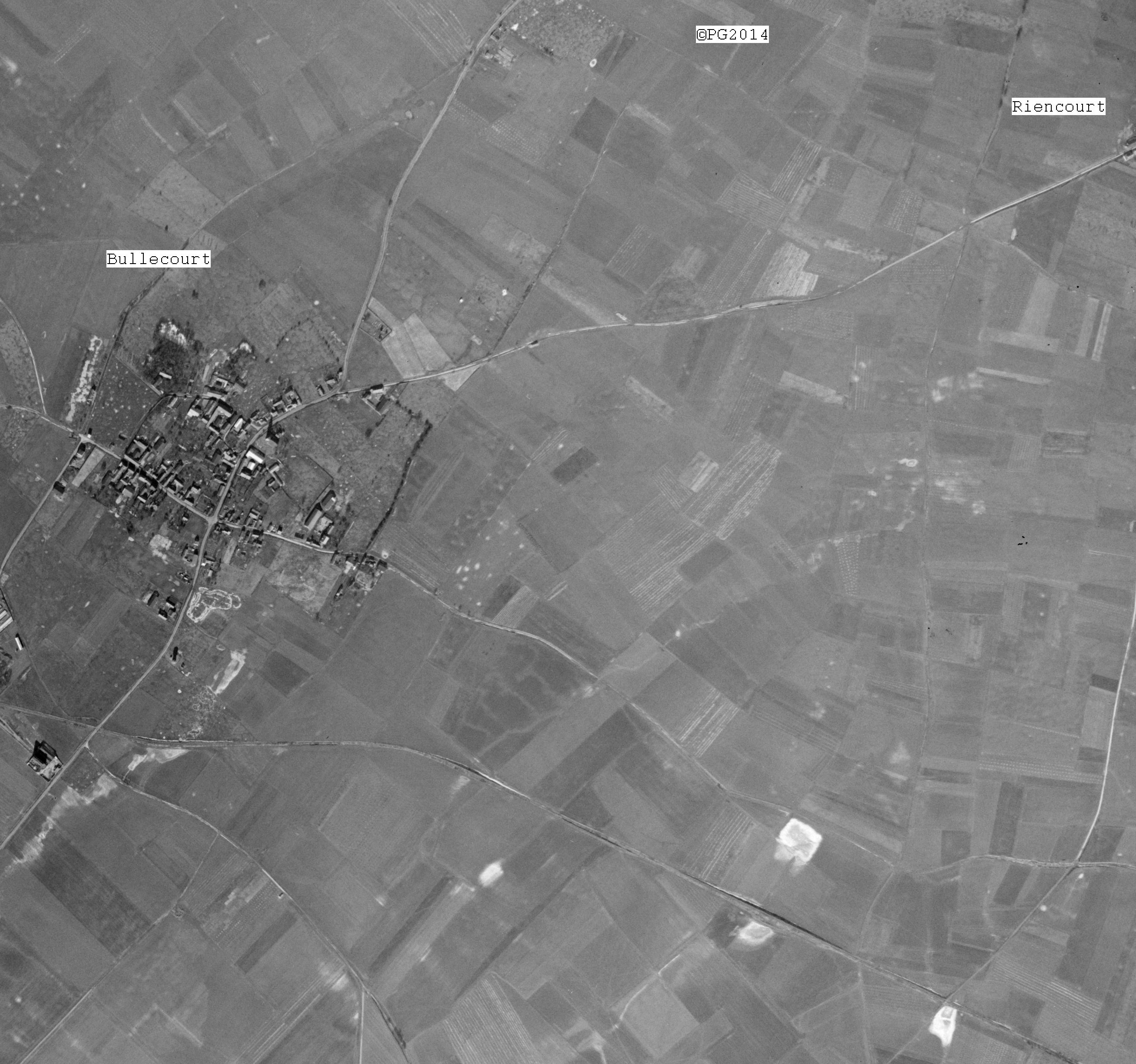 Voici une carte du secteur de Bullecourt en mai 1917, une vue aérienne de Bullecourt vers 1918 et des extraits d'une photo aérienne du même secteur prise en 1963.