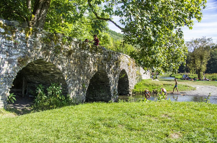 Partant de Alle, le parcours vous entraîne tout d’abord aux abords du Moulin de Mouzaive, édifice classé sis au confluent de la Semois et du ruisseau de Gros-Fays, où une légende rapporte une bien curieuse histoire de couleuvres… Puis, votre balade se poursuit le long de la Semois avant de pénétrer en pleine forêt. Ensuite, c’est la découverte de Vresse et de son célèbre Pont St-Lambert, qui jadis mit en scène le saint patron du village et la douce et jolie Ste-Agathe de Laforêt… Empruntez le chemin des Demoiselles pour vous plonger à Laforêt, labellisé un des plus beaux villages de Wallonie, dans un univers étrange de fées, sorcières, loups-garous, diable, nutons, … qui émergent sur la crête de la colline. Un belvédère vous invite à découvrir un magnifique paysage après avoir traversé le Pont de Rebais, appelé curieusement également Pont des Romains, de par sa construction à la romaine. Là, vous apercevrez l’entrée d’une ancienne galerie d’ardoisières ainsi que les ruines des bâtiments d’exploitation. Encore quelques kilomètres en sous-bois en compagnie de la rivière avant de rejoindre Alle pour un repos bien mérité.