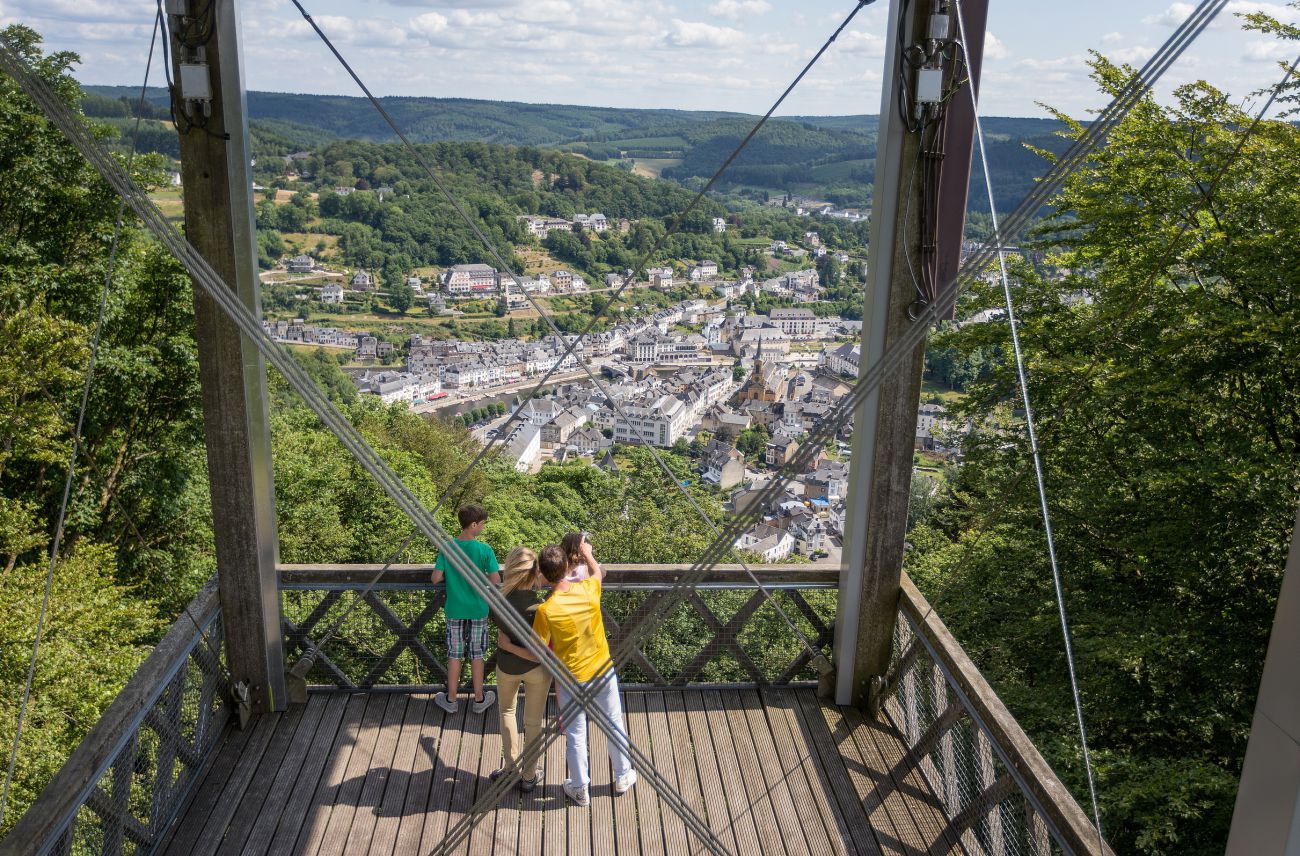 J’ai récemment parcouru l’itinéraire de Cordemois-Belvédère et je dois dire que c’est l’une des plus belles promenades que j’ai faites en Ardenne. Cette promenade d’une demi-journée vous emmène à travers une forêt de douglas centenaires et vous permet de découvrir l’abbaye de Cordemois. Vous passerez également à proximité de la fameuse Passerelle de l’Epine, une passerelle en douglas et métal galvanisé de 55 mètres de long. La montée au belvédère par le sentier des points de vue de l’Epine est un peu difficile, mais la vue panoramique sur Bouillon en vaut vraiment la peine.